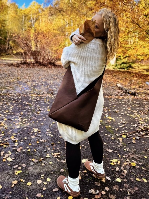 Torebka miękka ‚Origami’ duża, kolor czekoladowy brąz, skóra naturalna