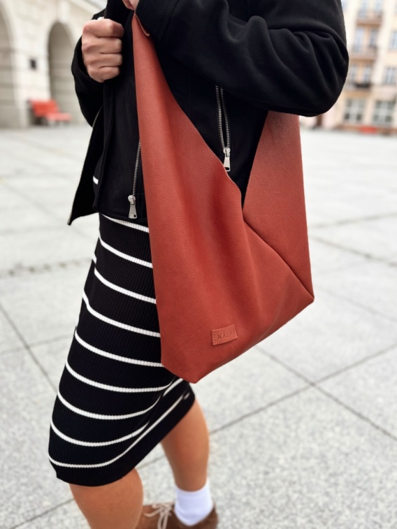 Torebka miękka ‚Origami’ duża, kolor terakota, skóra naturalna